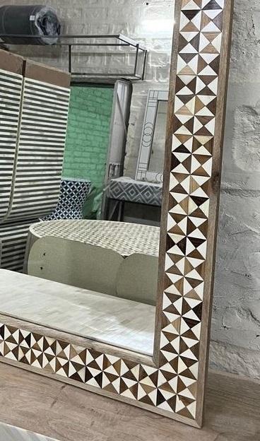 Cadre de miroir rectangulaire en incrustation d'os fabriqué à la main par des artisans qualifiés pour une décoration murale élégante avec prix de gros