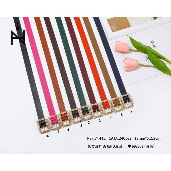 Ceinture en cuir PU rectangulaire à boucle droite 2,5 cm Ceintures de mode pour femmes