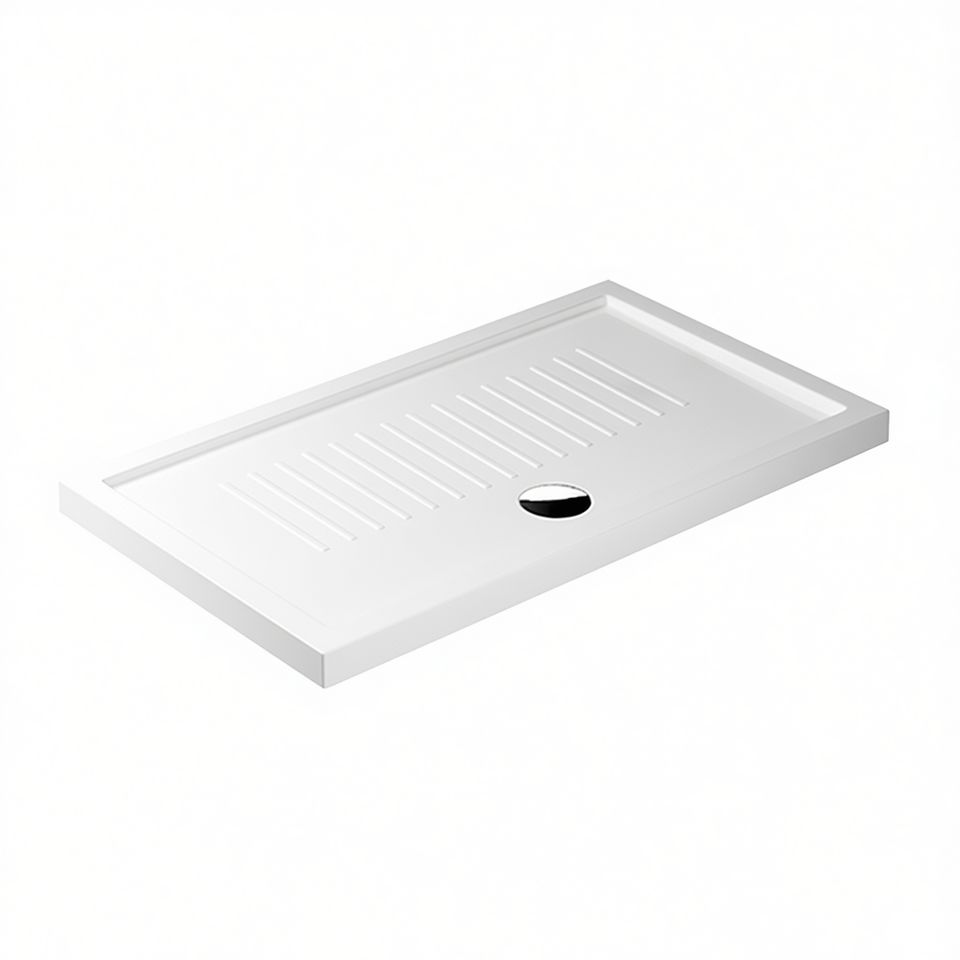 Receveur de douche rectangulaire en céramique 72 x 90 cm H. 6 cm avec cannelures de drainage pour salle de bain