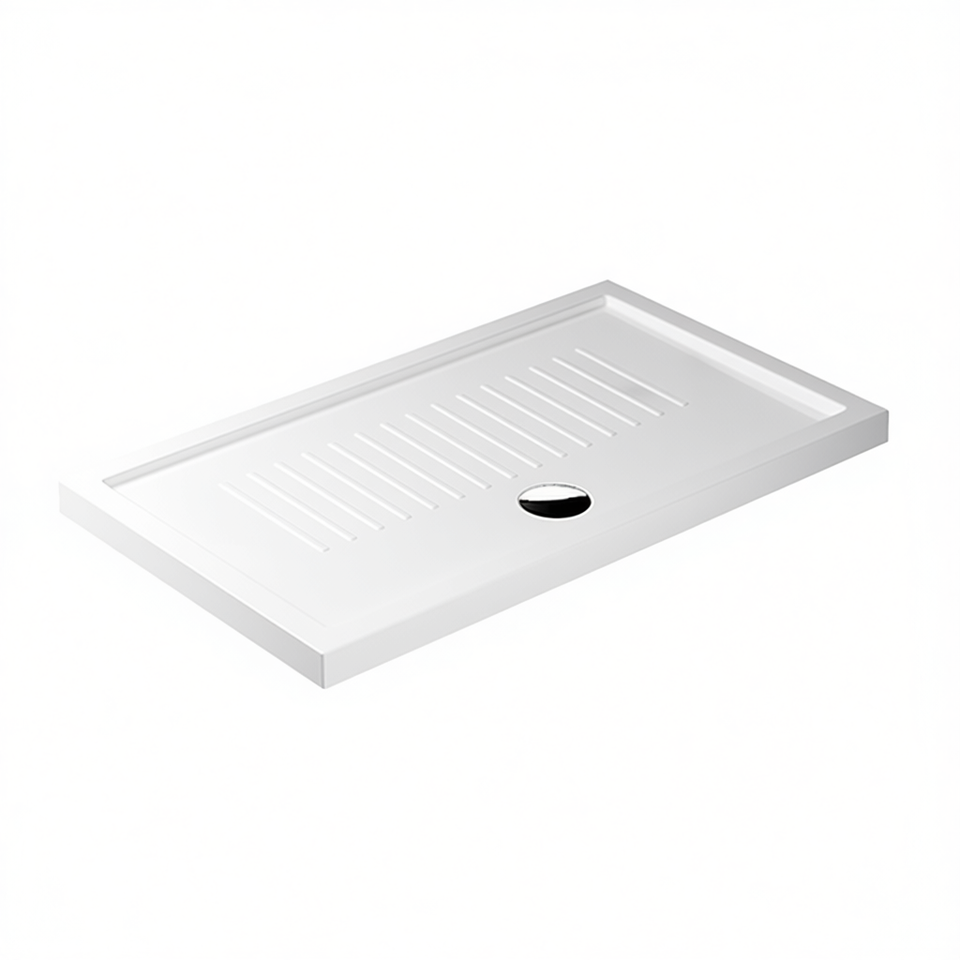 Receveur de douche rectangulaire en céramique 75 x 100 cm, hauteur 6 cm, avec rainures de drainage pour salle de bain