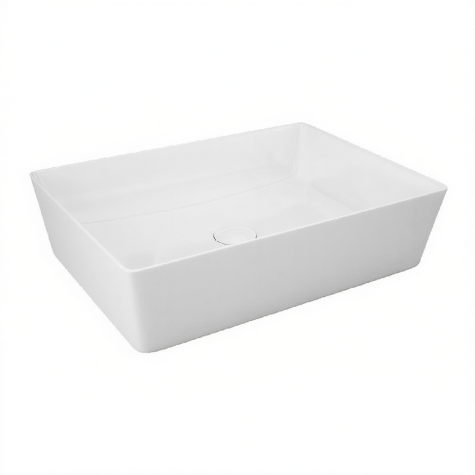 Lavabo rectangulaire à poser sur comptoir, longueur 51,5 cm, finition blanc mat