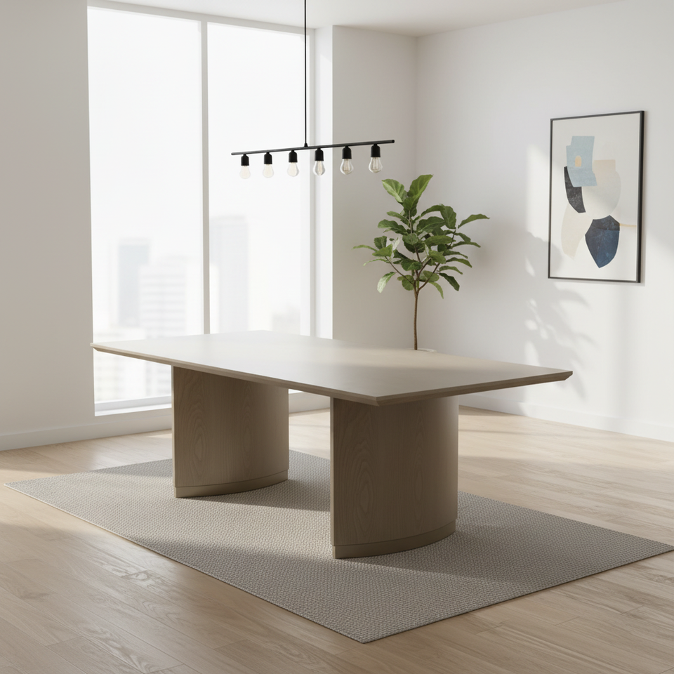 Table à manger rectangulaire en bois de frêne naturel, design moderne, écologique et durable, pieds en métal, meubles de salle à manger pour 8 personnes