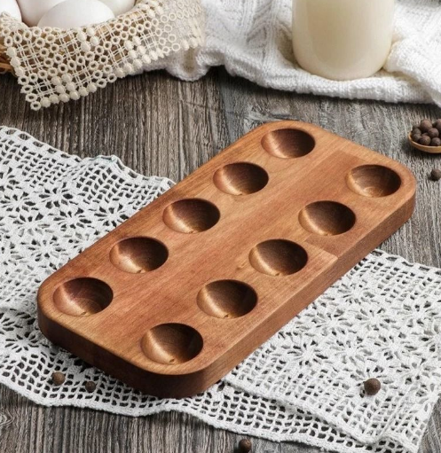 Plateau à œufs rectangulaire en bois d'acacia massif, support de rangement et présentoir de comptoir pour la cuisine