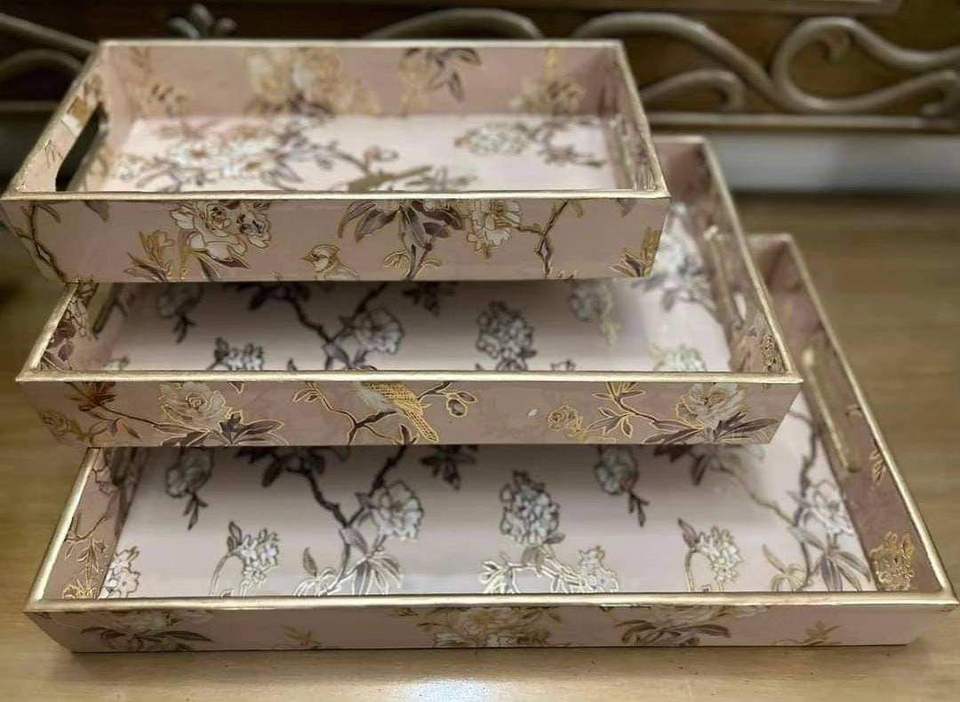 Plateau de service de table rectangulaire en bois imprimé émaillé Prix de gros Fabricant de l'Inde Plateau de service en bois fait main de nouveau style