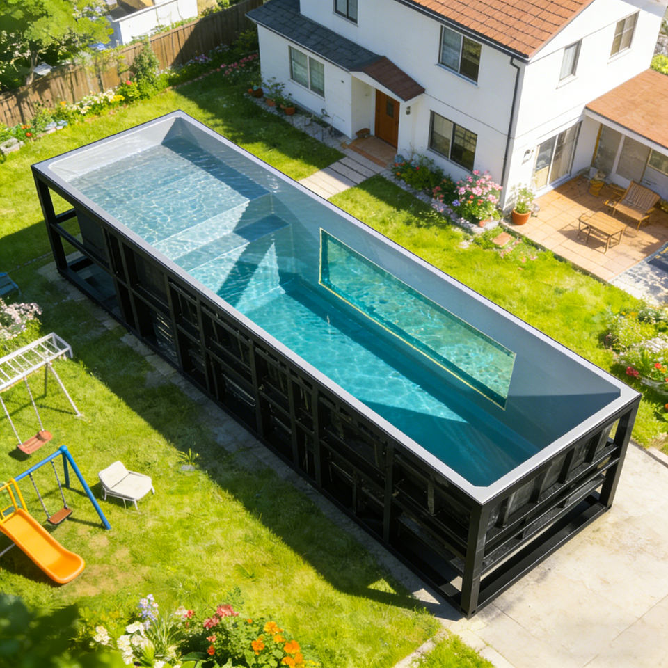 Piscine en verre acrylique sur mesure avec cascade, éclairage LED, cadre en bois, piscine de jardin, spa, piscine en fibre de verre