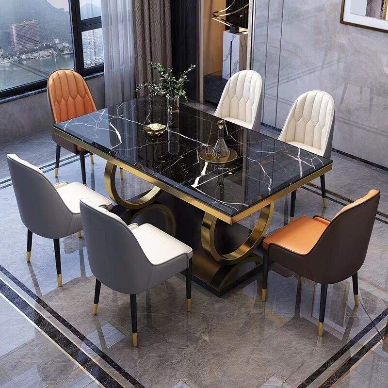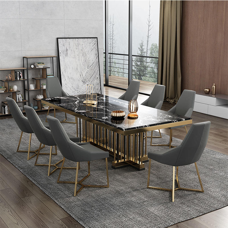 Tables à manger rectangulaires Ginza 8 places en métal et pierre, style italien moderne, tables à manger en marbre de luxe