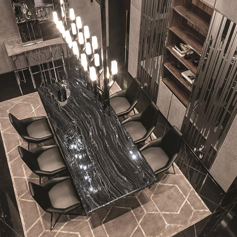 Tables à manger rectangulaires Ginza 8 places en pierre métallique, italiennes et modernes Tables à manger de luxe en marbre