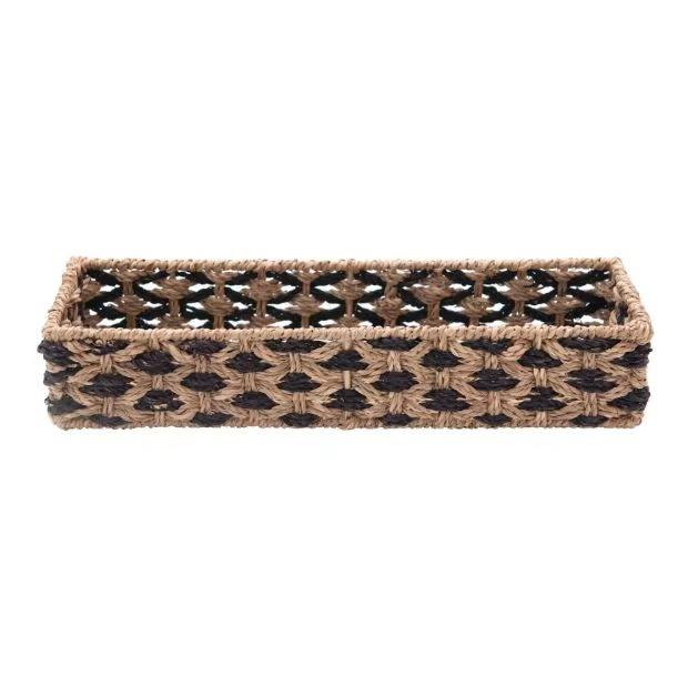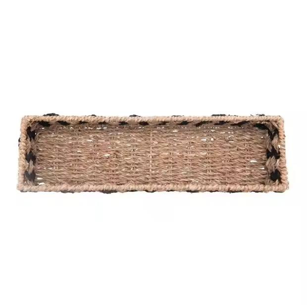 Panier rectangulaire tissé à la main avec cadre en fer robuste, idéal pour l'organisation des comptoirs de salle de bain ou de chambre, un indispensable pour l'organisation des étagères.