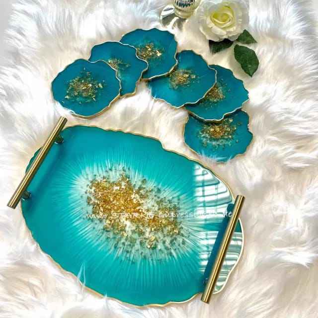 Sous-verre rectangulaire hexagonal personnalisé en résine et bois d'acacia brut, durable, avec support