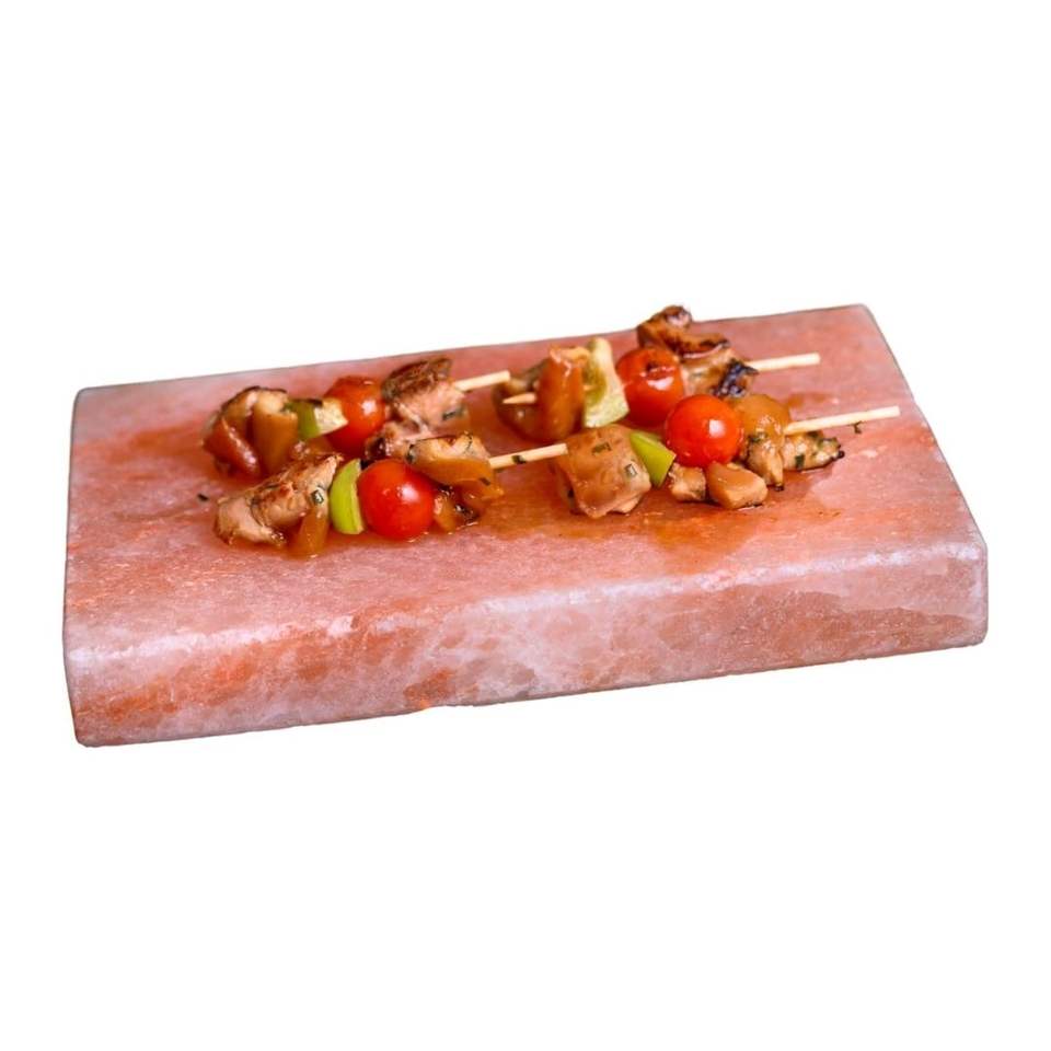 Dalle de cuisson rectangulaire au sel de l'Himalaya avec support en métal Plaque d'artisanat naturel pour barbecue Griller de la viande et des fruits de mer