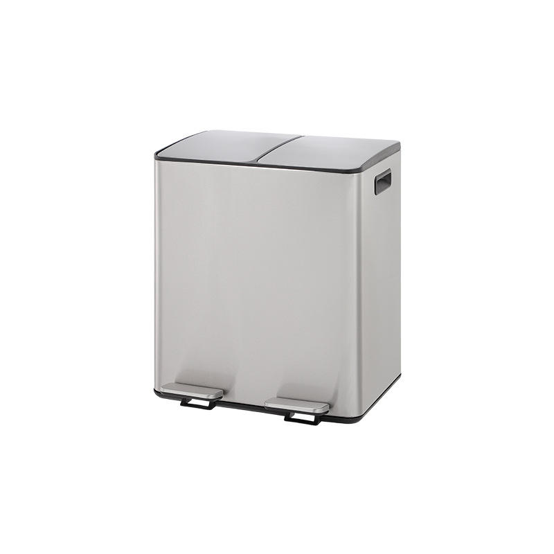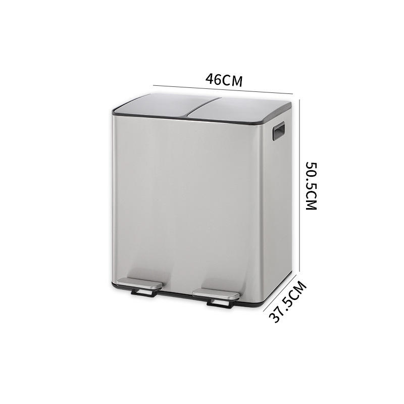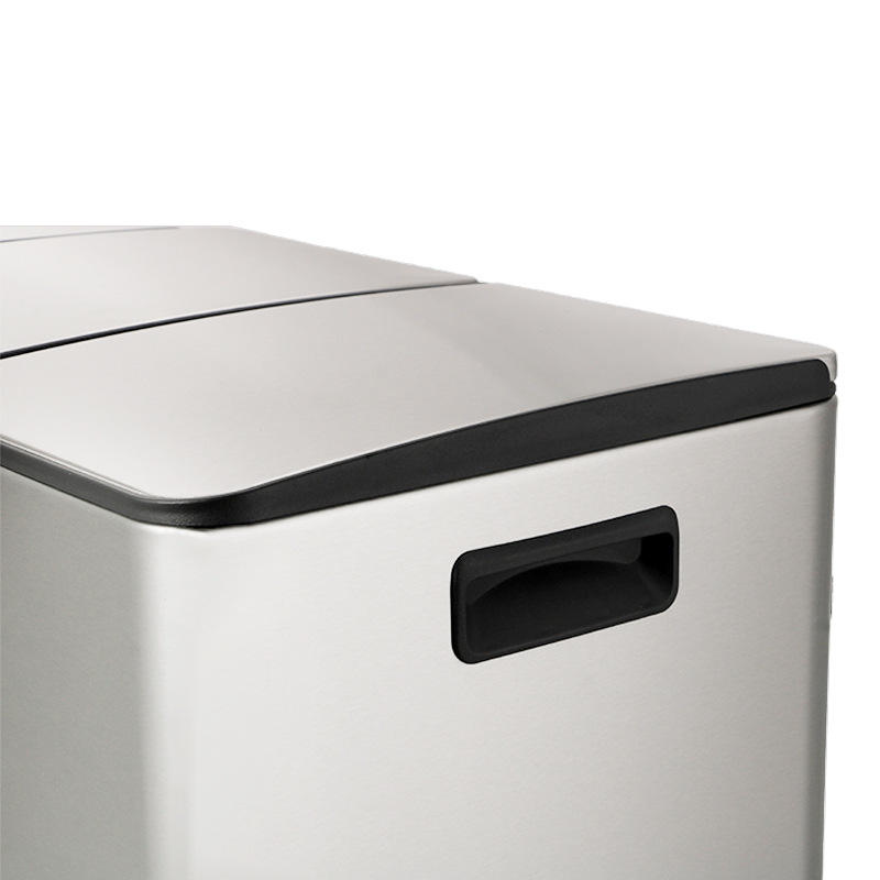 Poubelle de cuisine rectangulaire en acier inoxydable 2 compartiments à fermeture en douceur poubelle de tri