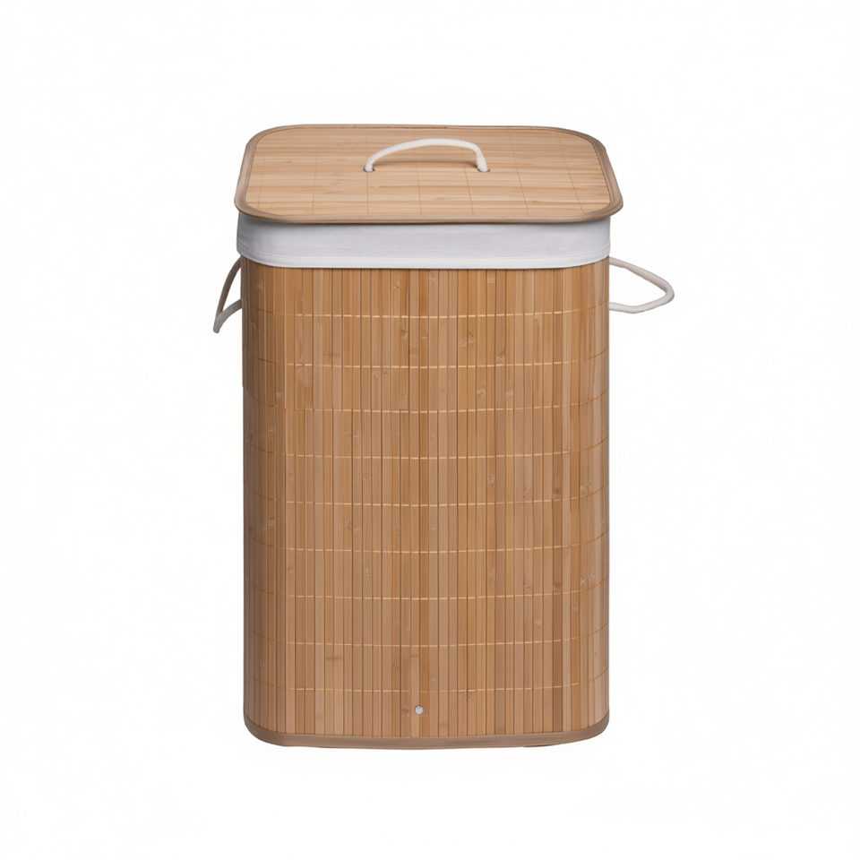 Panier à linge rectangulaire 68 cm de longueur en bambou blanc avec couvercle et poignées pour vêtements