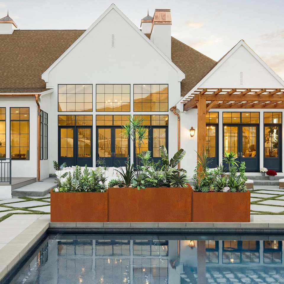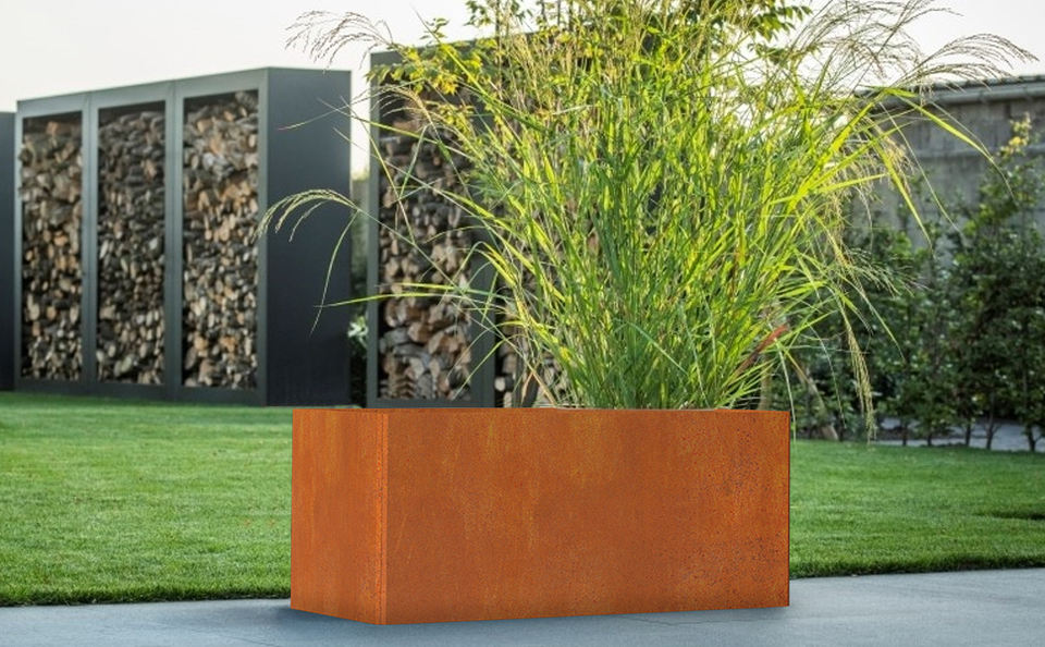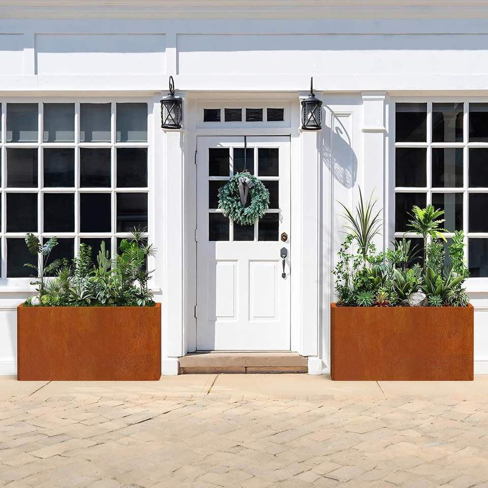 Boîte de jardinières rectangulaire basse Jardinières en acier corten Boîte à fleurs de style rustique pour porche, patio, jardin, boîte à fleurs à décor commercial
