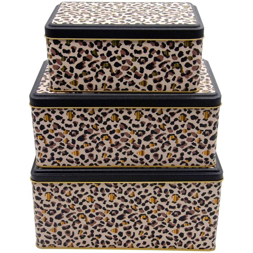 Ensemble de boîtes de rangement rectangulaires en métal-260x170x125mm-245x145x100mm- 193x117x88mm (lot de 3) Motif léopard doré Leo