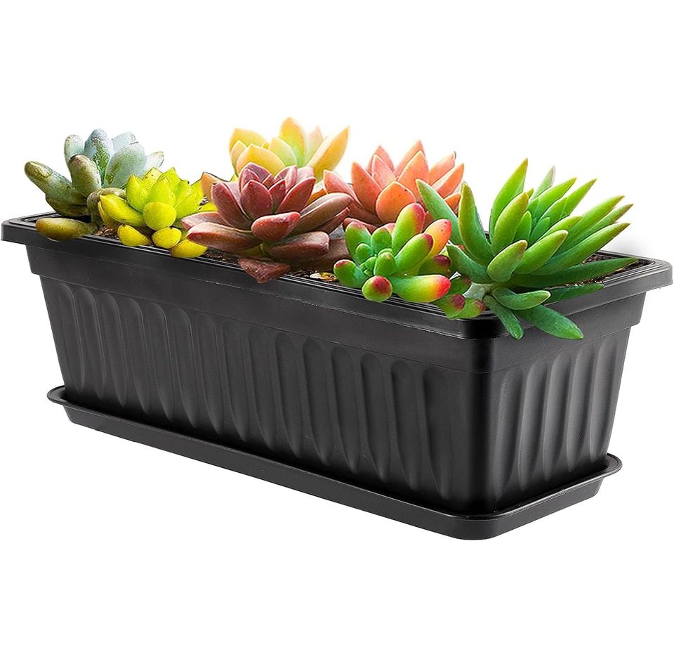 Pot de fleur rectangulaire en plastique avec plateau pour rebord de fenêtre de balcon et jardin pour jardinières et jardinières