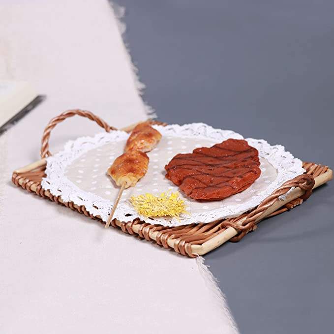 Plateau de service alimentaire rectangulaire en rotin de grande taille Design tissé de haute qualité idéal pour le service de collations et d'ustensiles de cuisine