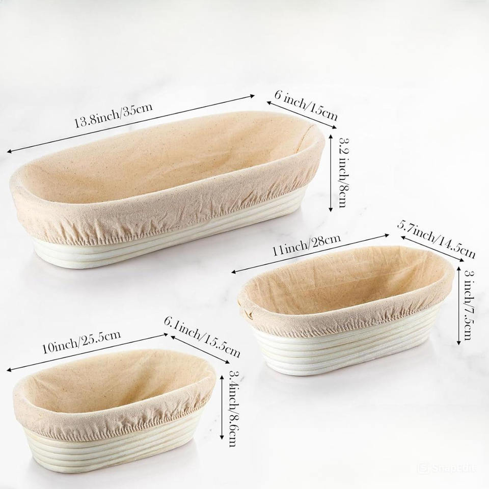 Panier de levage rectangulaire en rotin avec doublure en lin pour la levée de la pâte à pain, ensemble banneton, outil de boulangerie naturel fait main