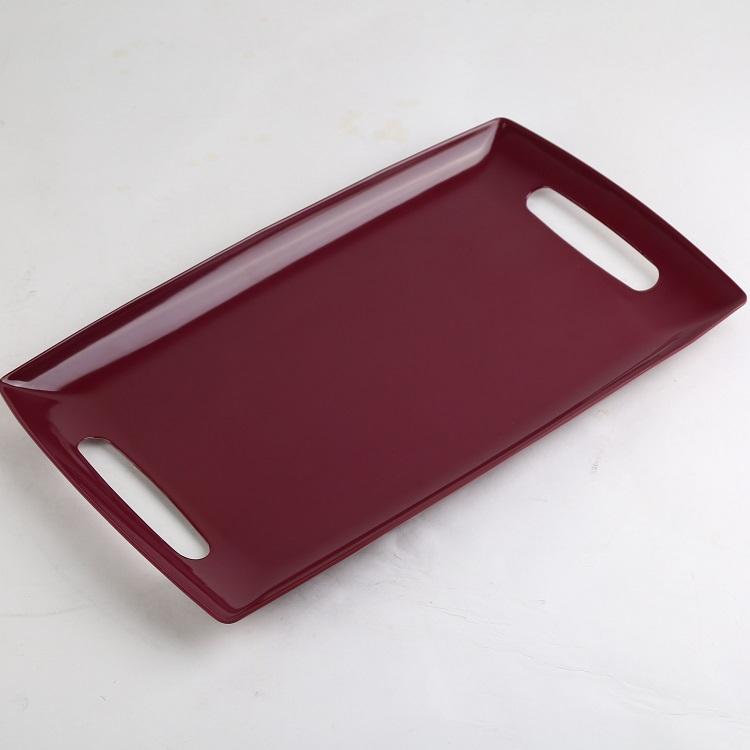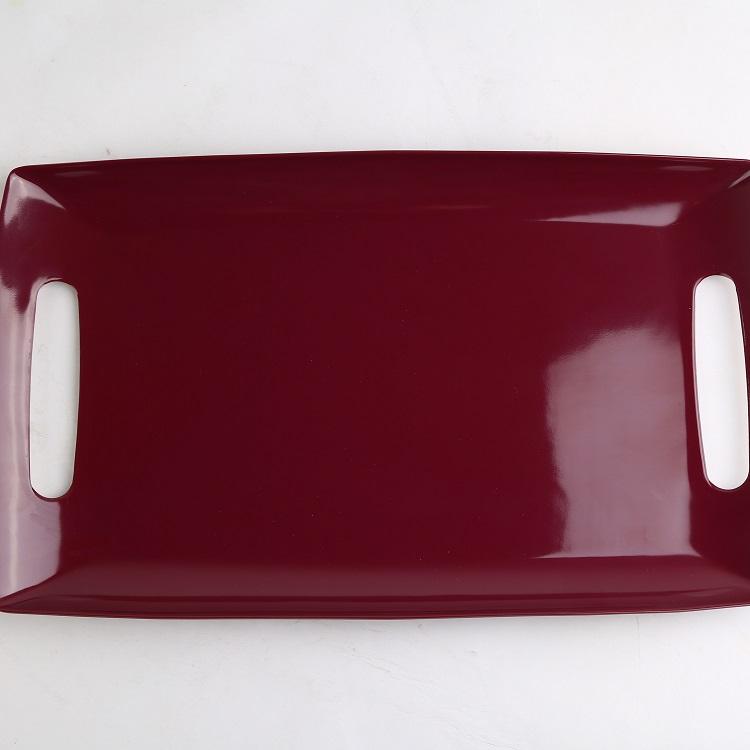 Plateau de service rectangulaire en mélamine rouge 40x24x2,5 cm avec poignée, compatible lave-vaisselle, finition laquée, motif uni, pour usage en cuisine