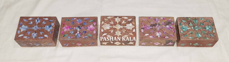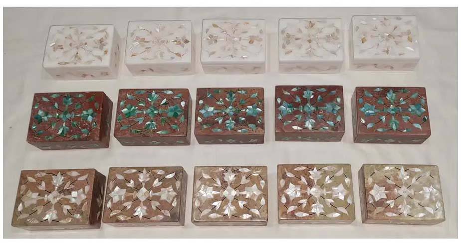 Boîtes à bijoux rectangulaires faites à la main en pierre ollaire naturelle avec incrustation de nacre à motif floral pour la décoration et les cadeaux