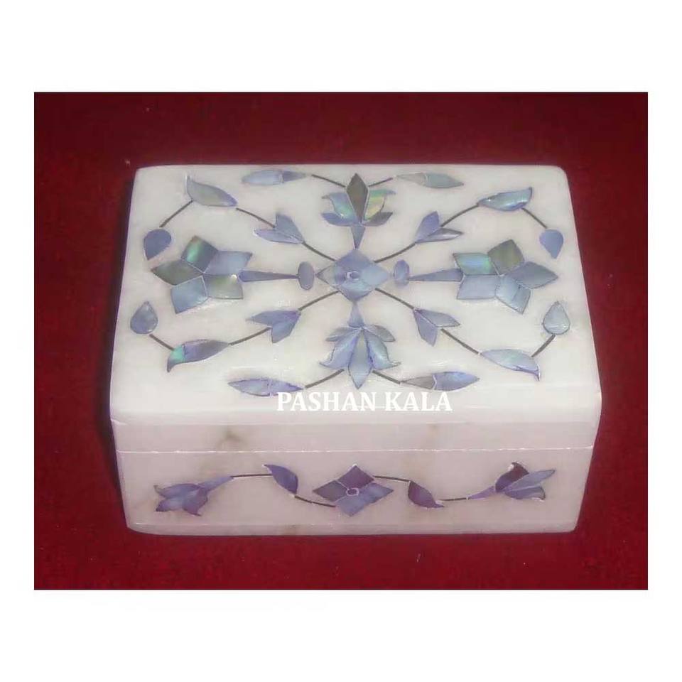 Incrustation de marbre blanc fait à la main de forme rectangulaire avec boîte à bijoux en nacre bleue avec la meilleure qualité pour la décoration de la maison