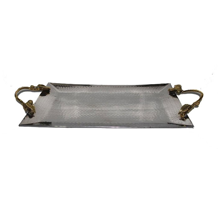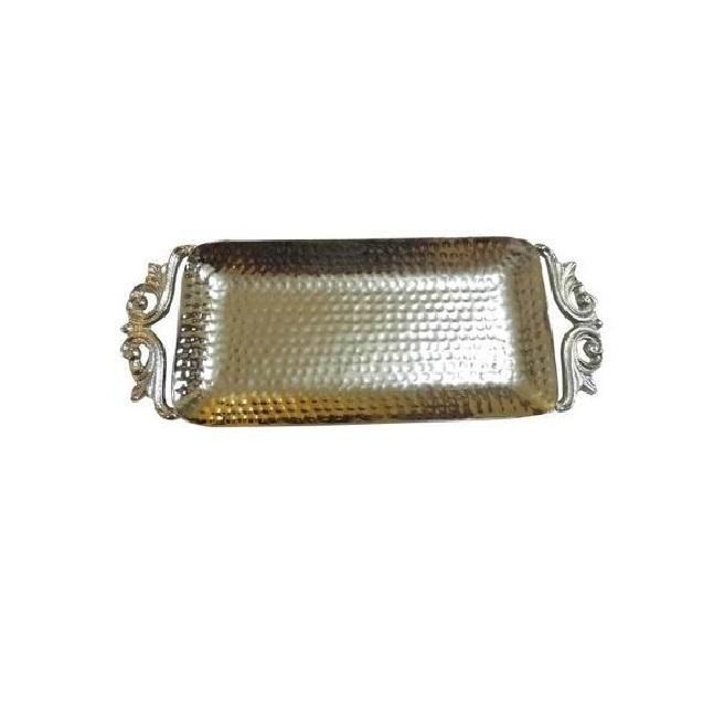 Plateau de service indien fait à la main de forme rectangulaire orné de brillant et lisse plaqué argent avec des poignées dorées plateau de service