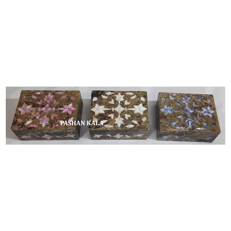 Boîtes à bijoux de forme rectangulaire en stéatite naturelle brillante avec incrustation de nacre avec produit de haute qualité pour la décoration de la maison
