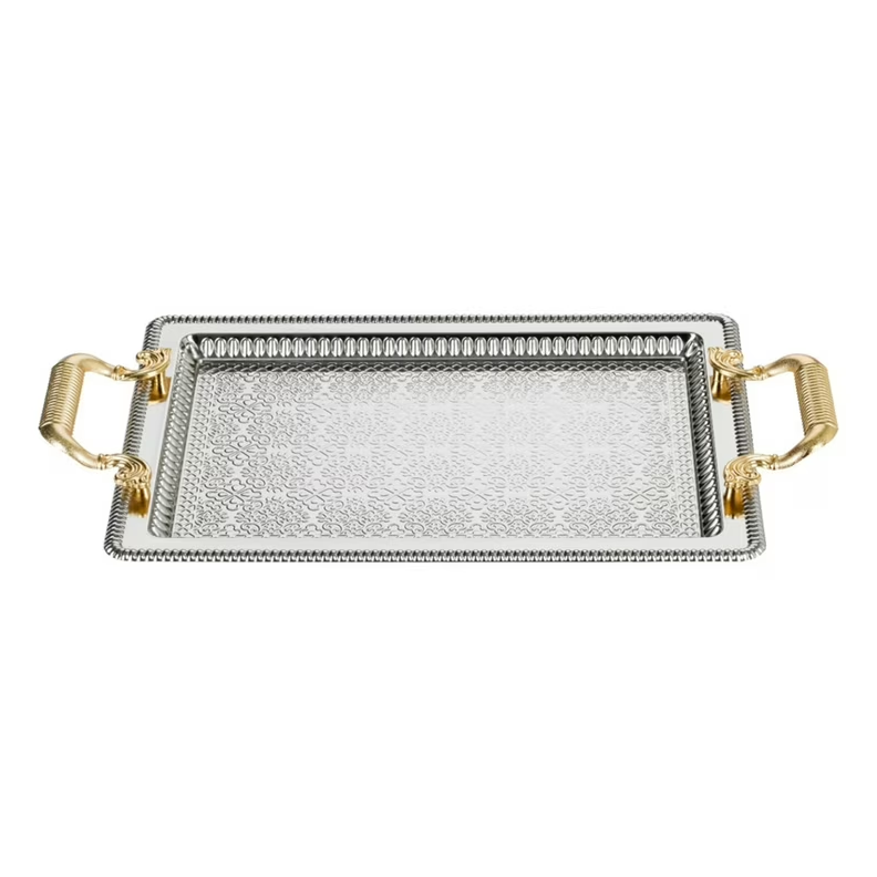 Plateau en métal nickelé de forme rectangulaire pour hôtel et restaurant Plateaux de service en métal Plateau en métal en acier inoxydable