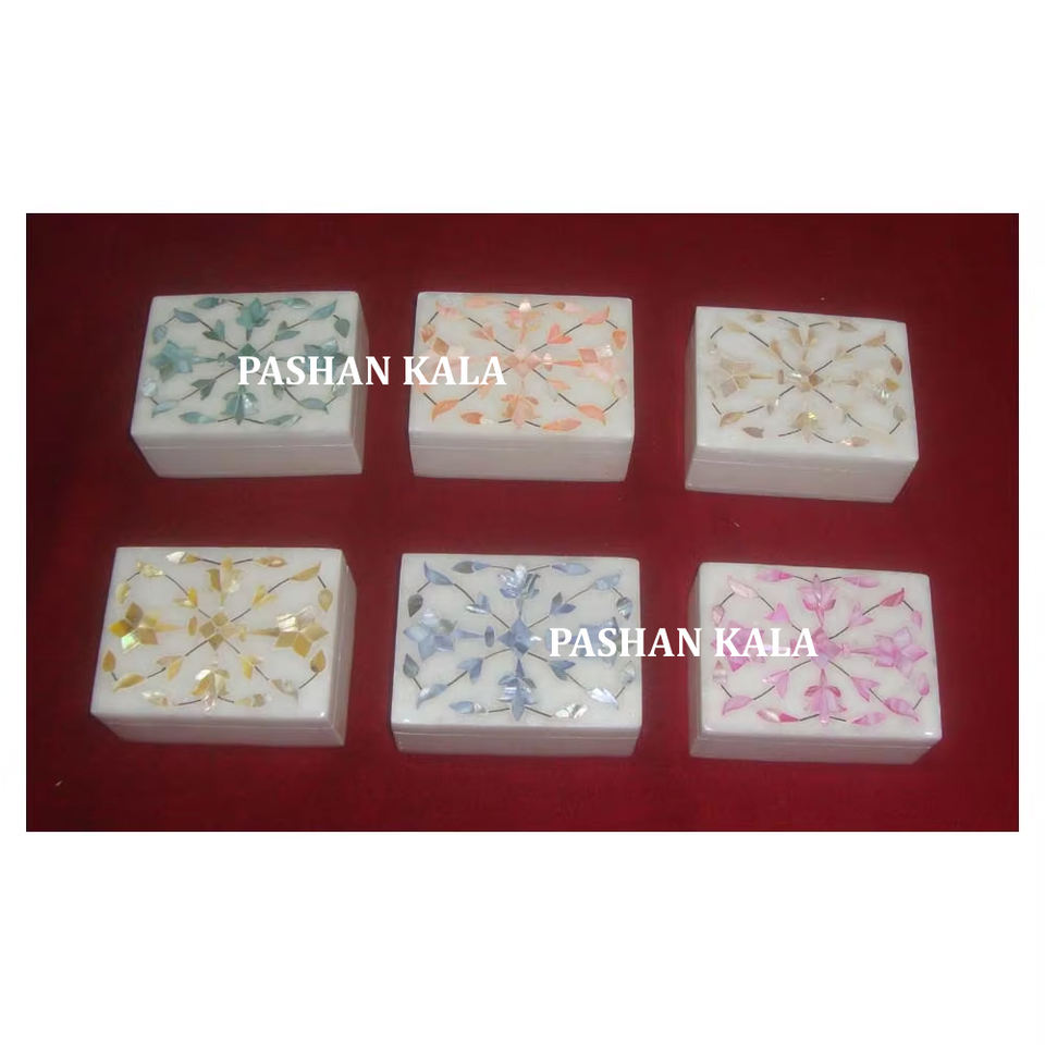 Nacre incrustée de marbre blanc de forme rectangulaire avec boîte à bijoux de différentes couleurs pour le but de cadeau de festival à bas prix