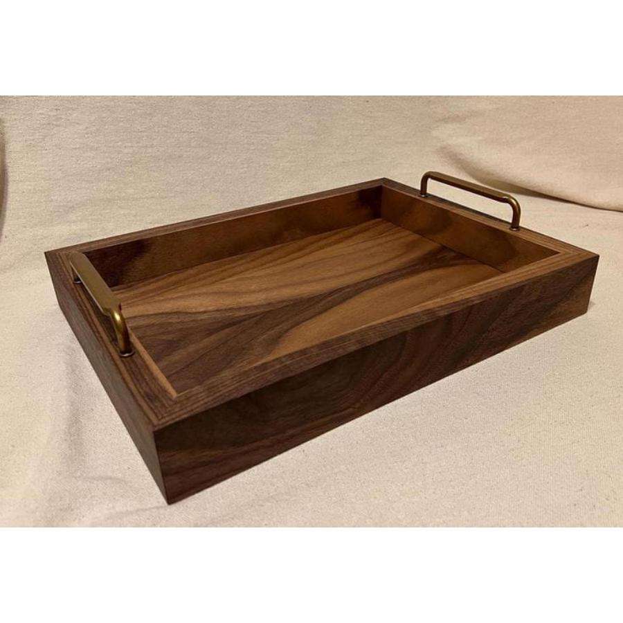 Plateau en bois de forme rectangulaire avec poignées en métal, design multifonctionnel, utilisations hôtelières et de restauration, plateaux décoratifs, prix abordable