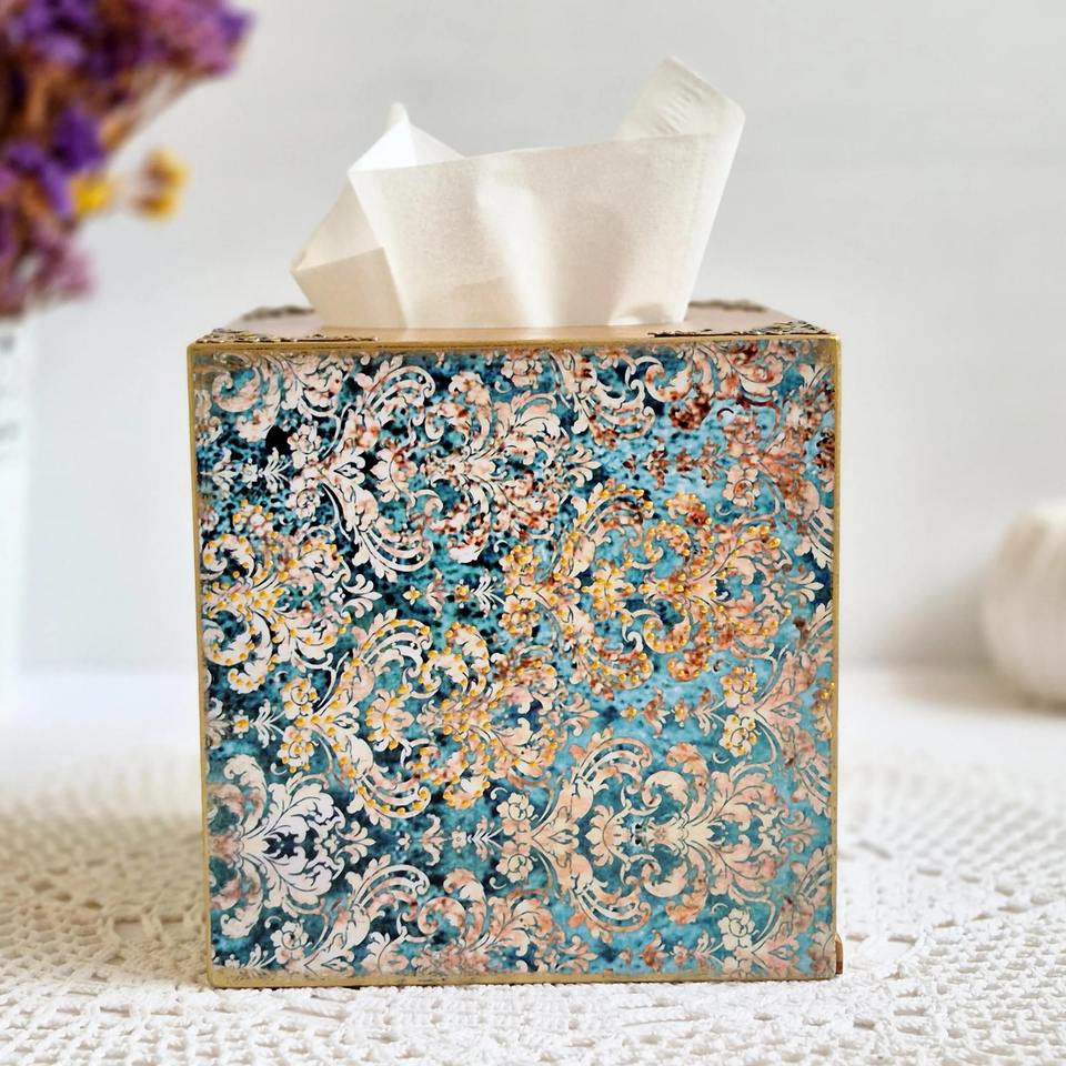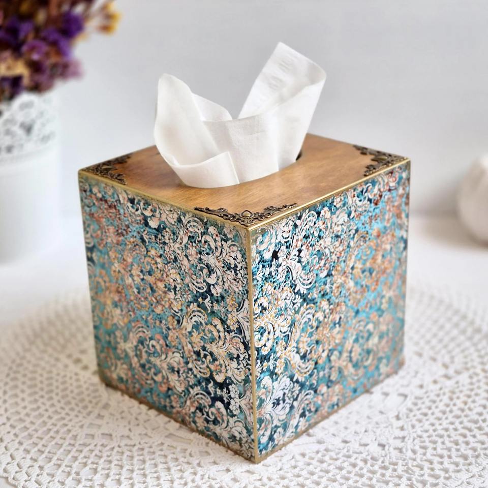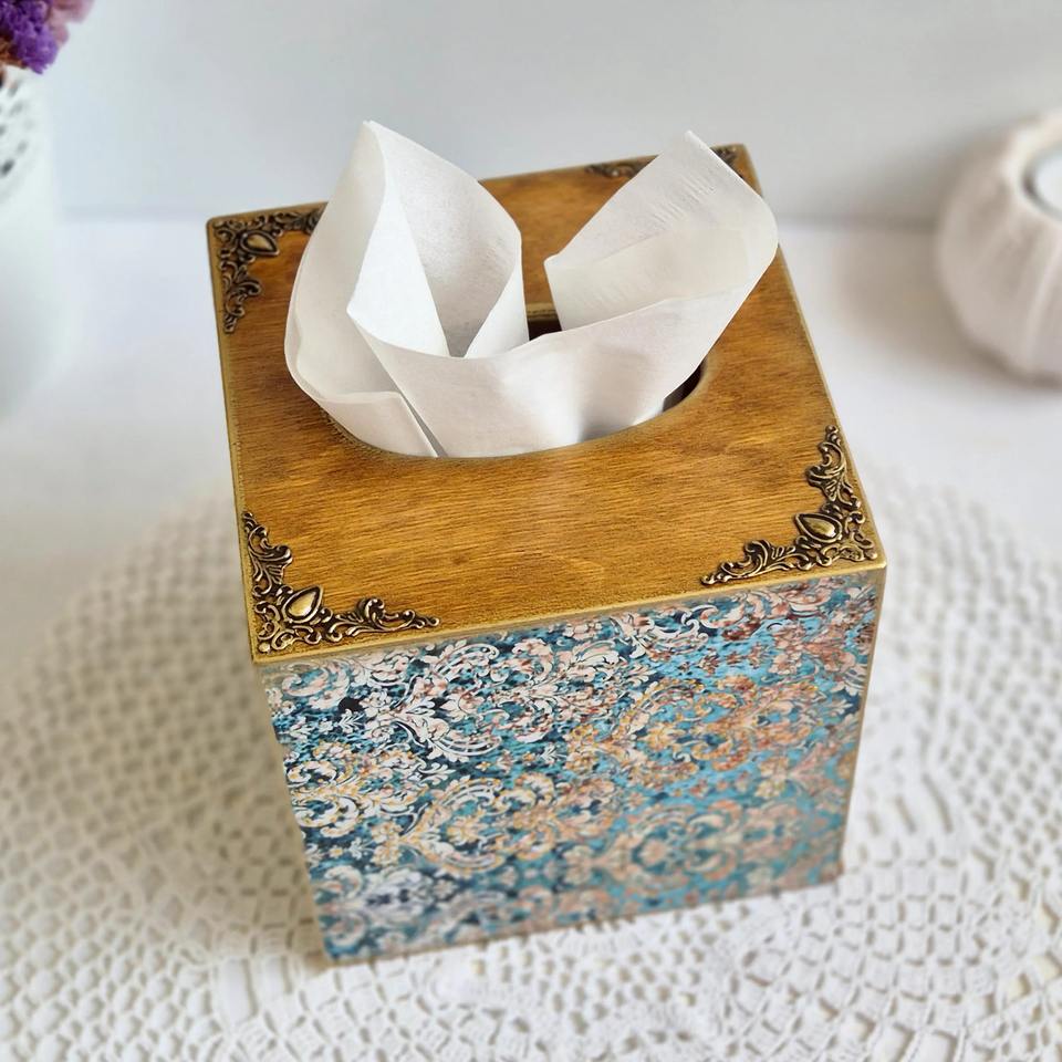 Boîte à mouchoirs rectangulaire en bois imprimé, boîte à mouchoirs classique en bois imprimé pour l'organisation de la maison, boîte de rangement en gros