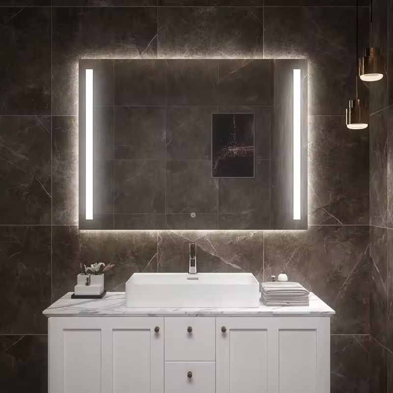 Miroir intelligent rectangulaire mural avec lumières LED Miroir de salle de bain nouveau style pour hôtel centre commercial à la mode tout-match abordable