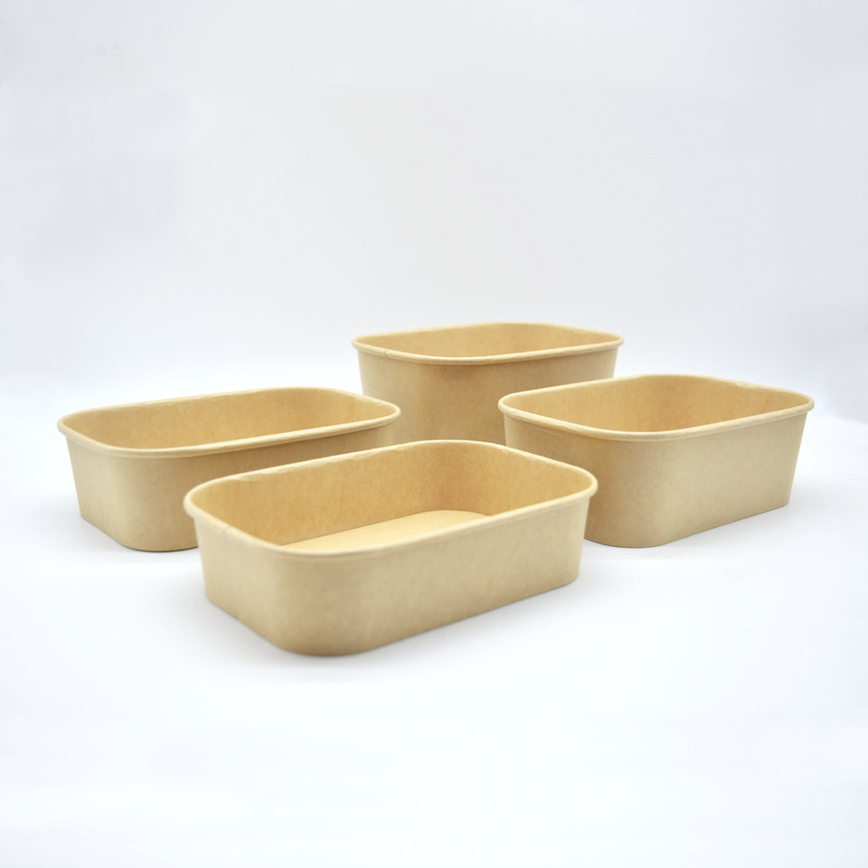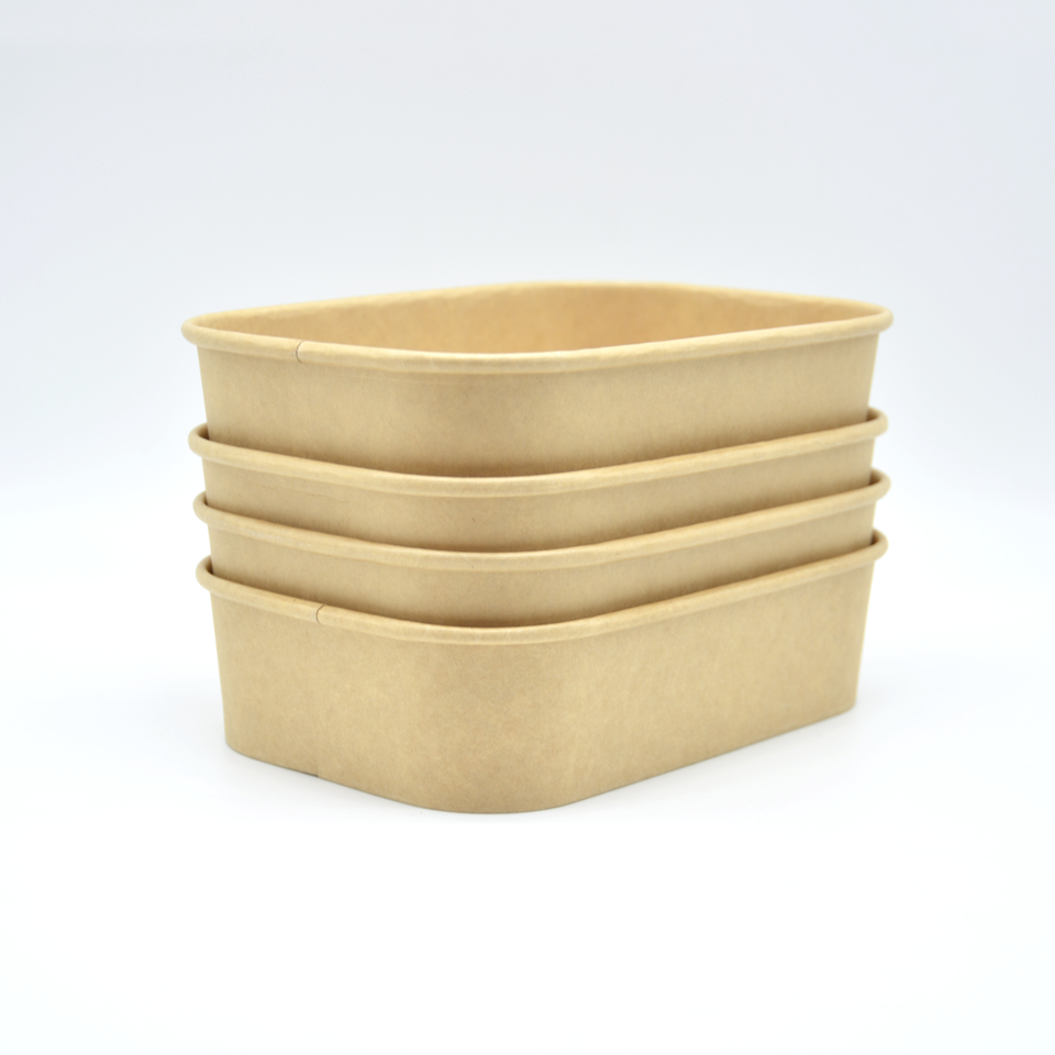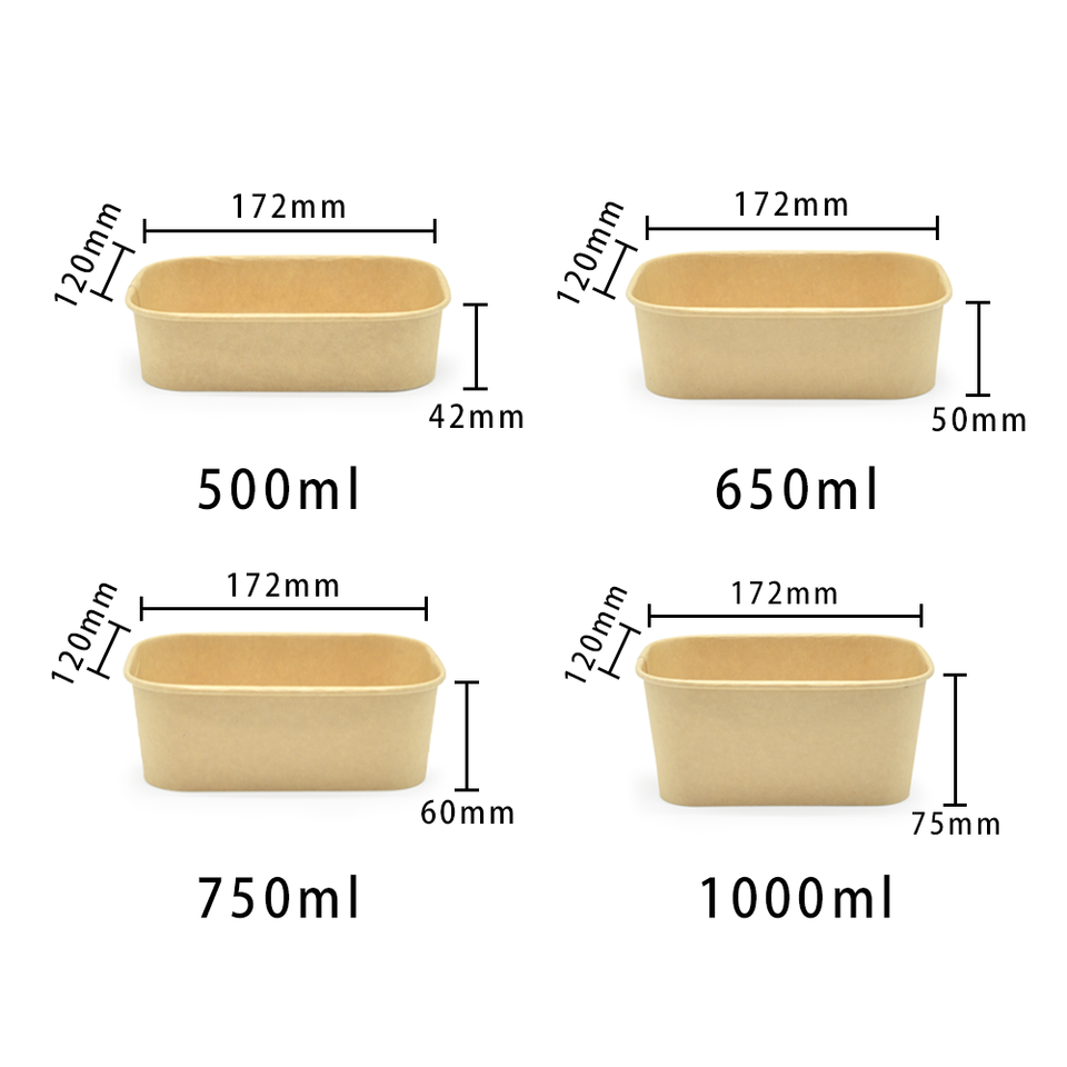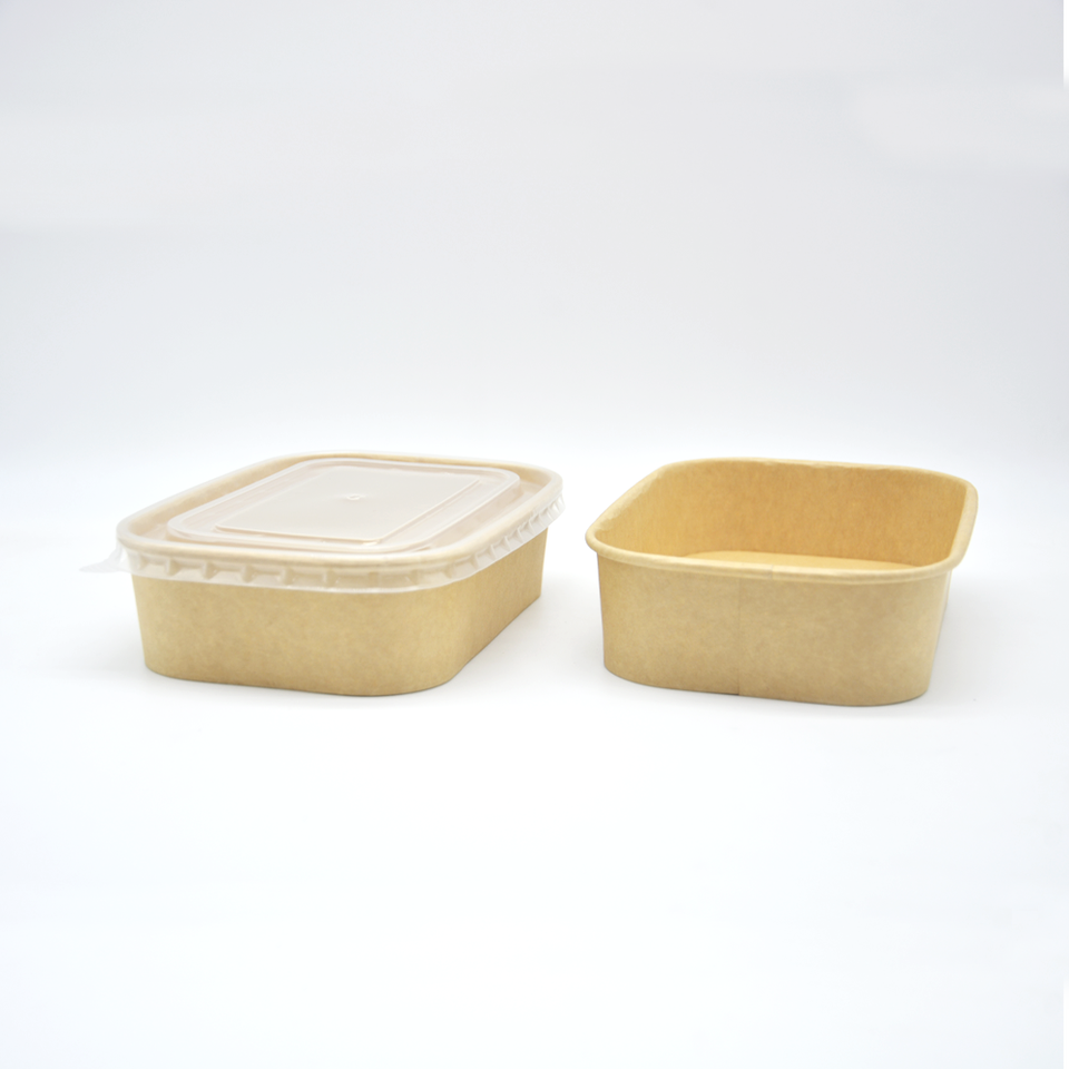 Bol à emporter rectangulaire en papier kraft jetable biodégradable, compatible micro-ondes, avec couvercle, pour servir des salades, des nouilles, des aliments
