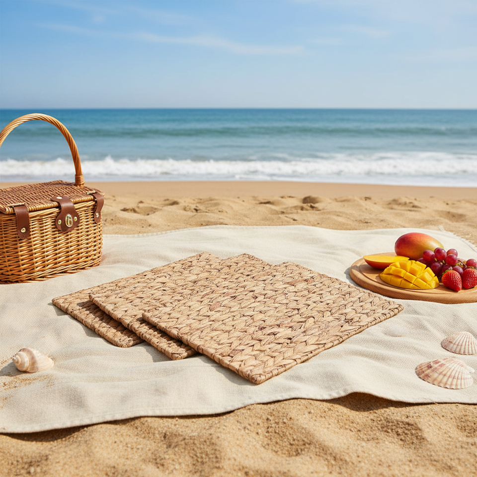 Set de table rectangulaire en jacinthe d'eau, forme rectangulaire, 100% jacinthe d'eau naturelle, sous-verres et sets de table écologiques, 25 cm x 35 cm