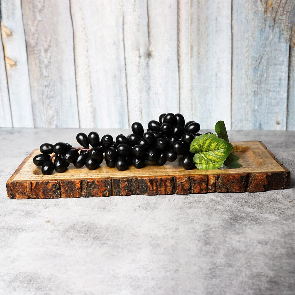 Plateau de service rectangulaire en bois avec écorce d'arbre Plateau de service polyvalent en bois de manguier massif Plateaux Assiette de charcuterie