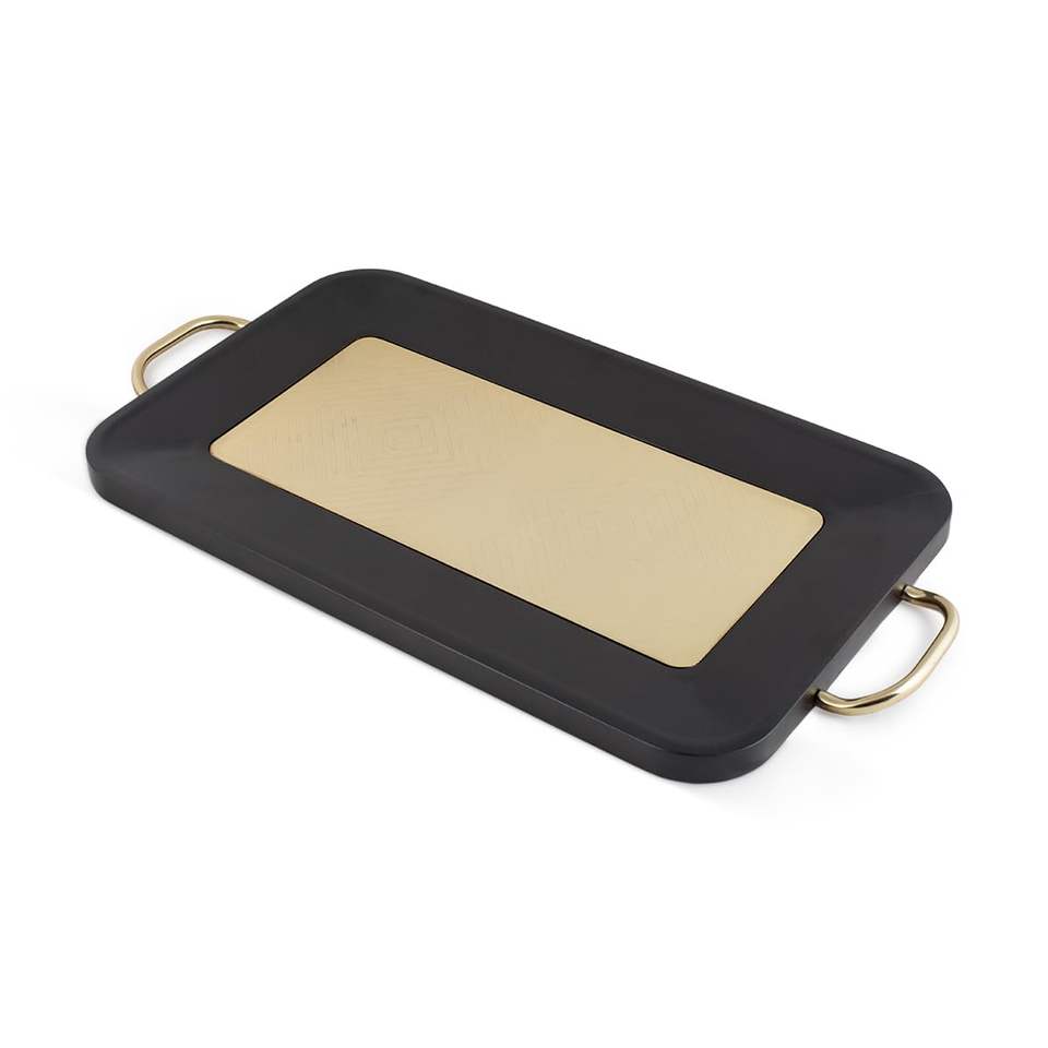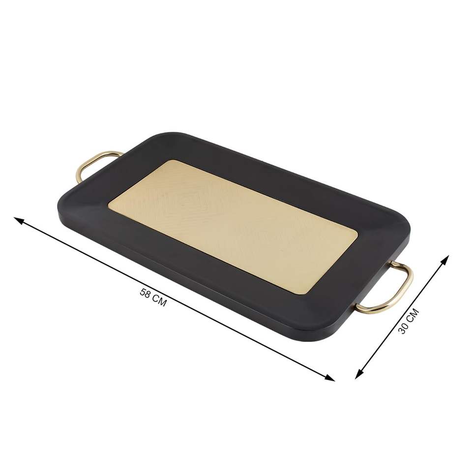 Plateau de service rectangulaire en bois et acier inoxydable doré, jetable, de qualité commerciale, pour la maison et la restauration