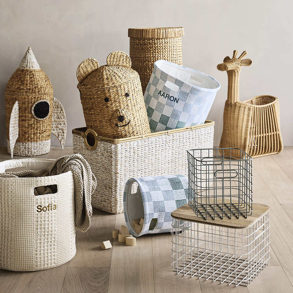 Panier rectangulaire tressé en jacinthe d'eau naturelle, panier de rangement décoratif, solution élégante pour le rangement des jouets d'enfants