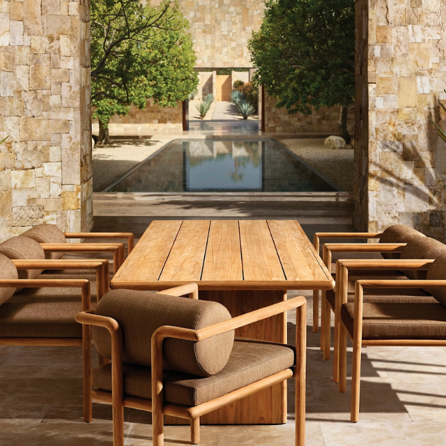 Table de salle à manger rectangulaire en teck de bonne qualité pour l'extérieur, durable et résistante à la pourriture