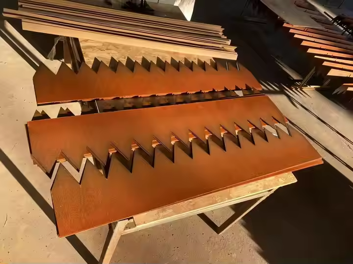 Bandes de bordure rectangulaires pour jardin en acier Corten, finition rouille-patine, design paysager organique, bandes métalliques en Corten