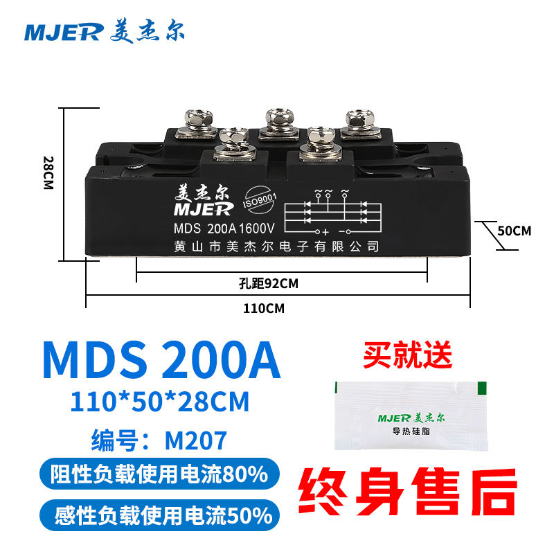 Redresseur 200A 1600V MDS200A condensateur de Module d'alimentation de redresseur de pont de diode triphasé MDS200A