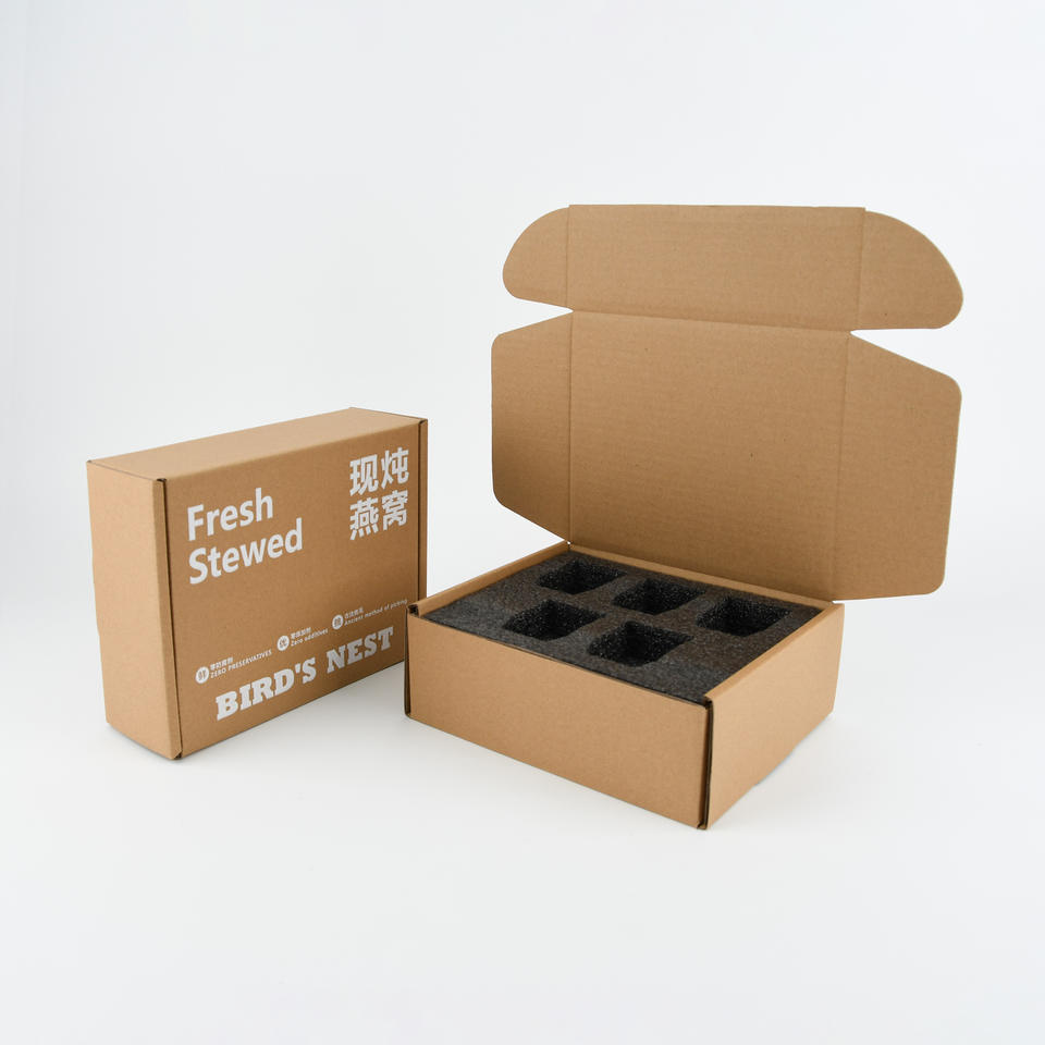 Boîte d'expédition kraft ondulée recyclable avec logo blanc fermeture à glissière au design plat joint d'arrachage pour produits cosmétiques pour chaussettes éponge doublée
