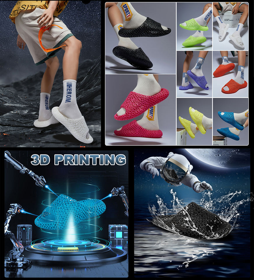 Chaussures imprimées en 3D recyclables et personnalisées Chaussons à glissière souples pour femmes et hommes en TPU élastique innovant personnalisé