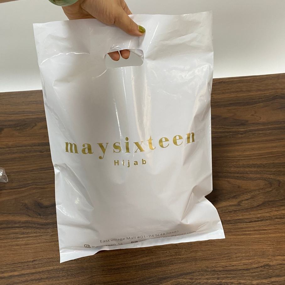 Sac de shopping en PE blanc avec bec verseur, personnalisable avec logo imprimé, découpé sur mesure, pour emballage de cosmétiques et vêtements, idéal pour cadeaux