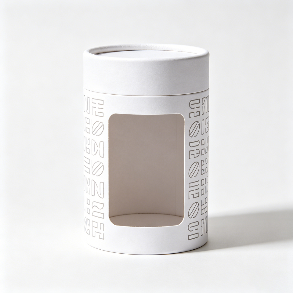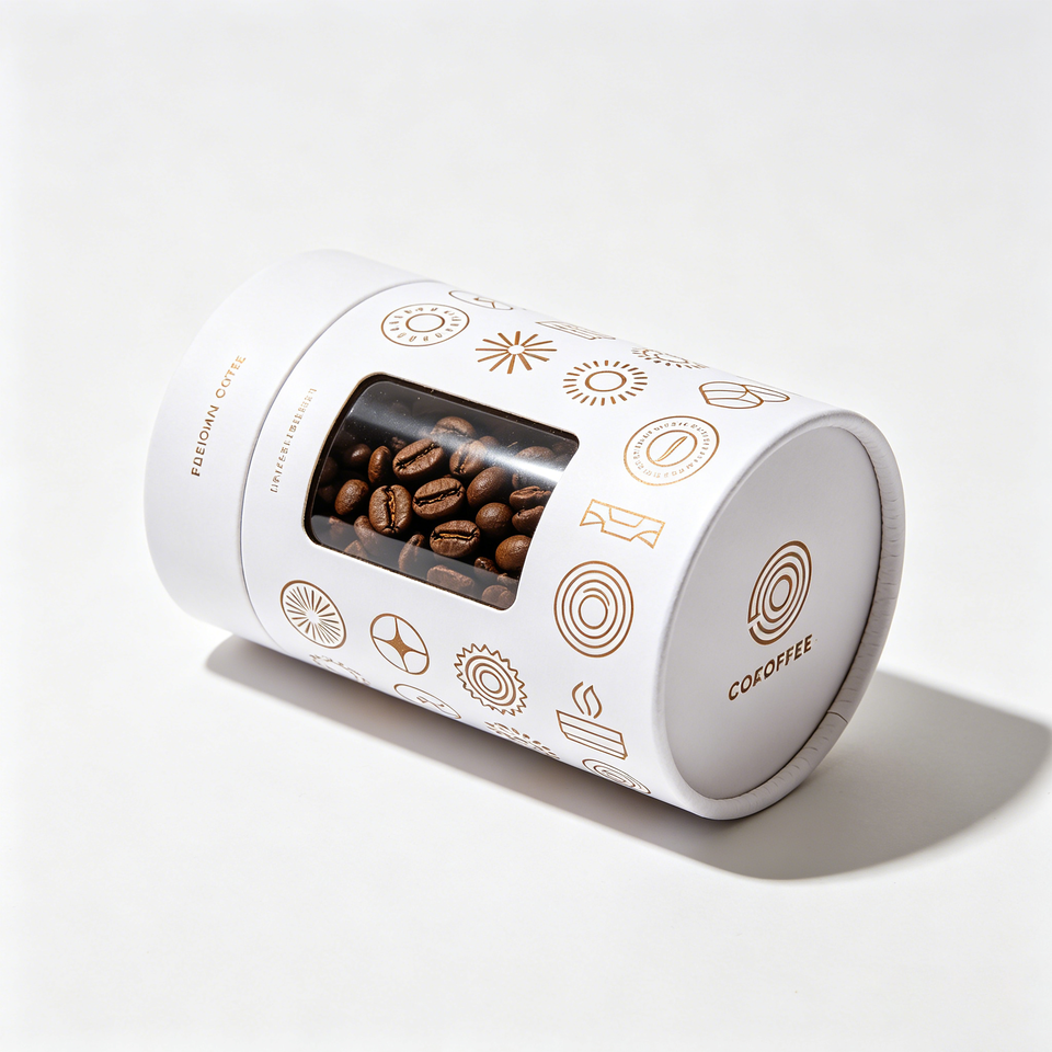 Boîte en carton cylindrique recyclable avec fenêtre de présentation, logo personnalisé pour l'emballage de grains de café et de produits secs