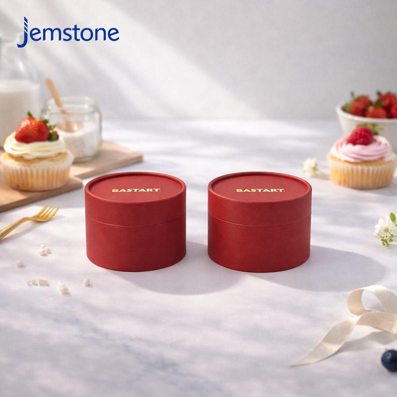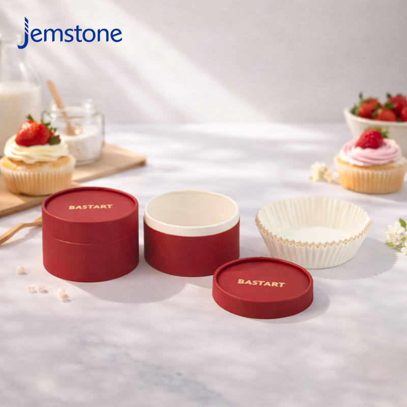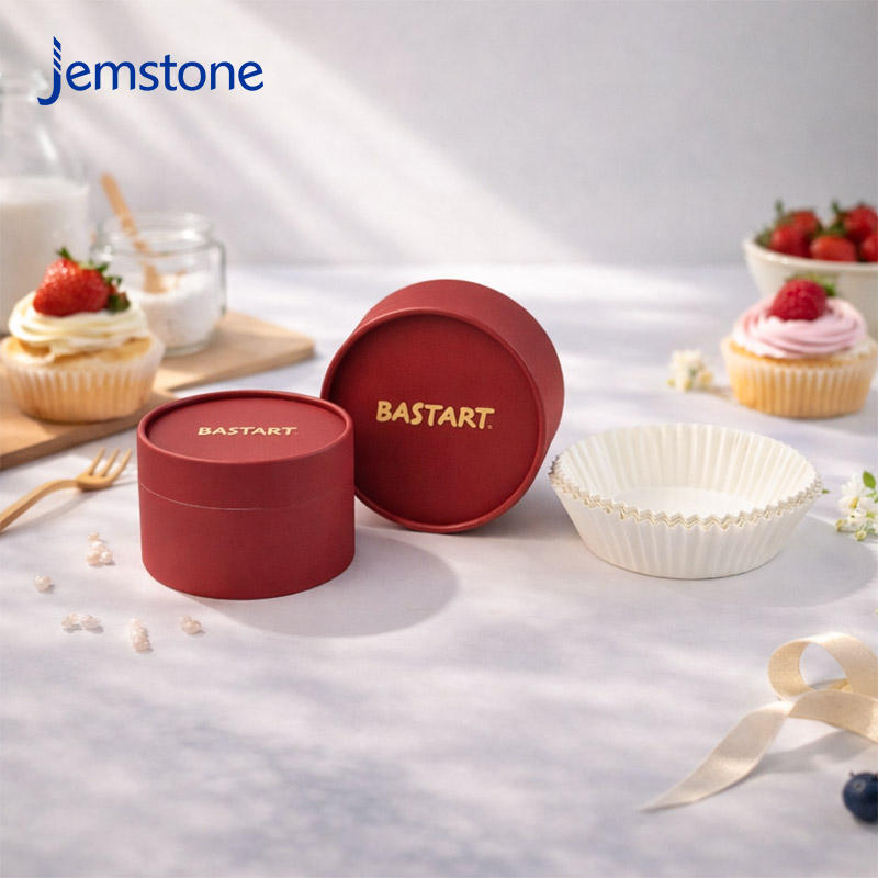 Emballage de boîte à gâteau ronde en carton kraft de qualité alimentaire, matériaux recyclables, emballage de tube en papier pour cheesecake avec logo estampé or