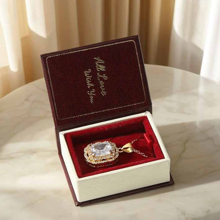 Emballage de bague de style livre en velours moderne recyclable, fermeture magnétique pour boîtes à bijoux de luxe, logo personnalisé imprimé pour collier