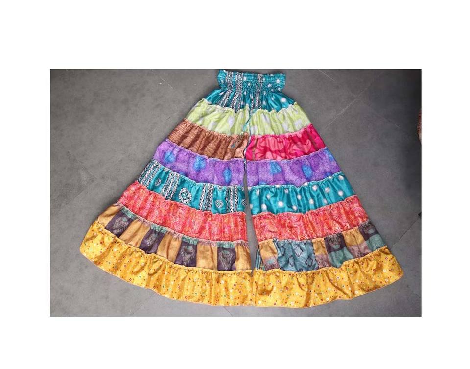 Recycle Sari Silk Pantalon patchwork à jambes larges, Pantalon jupe longue Boho Hippie pour femmes, Palazzo Patchwork Boho Hippie, Taille élastique