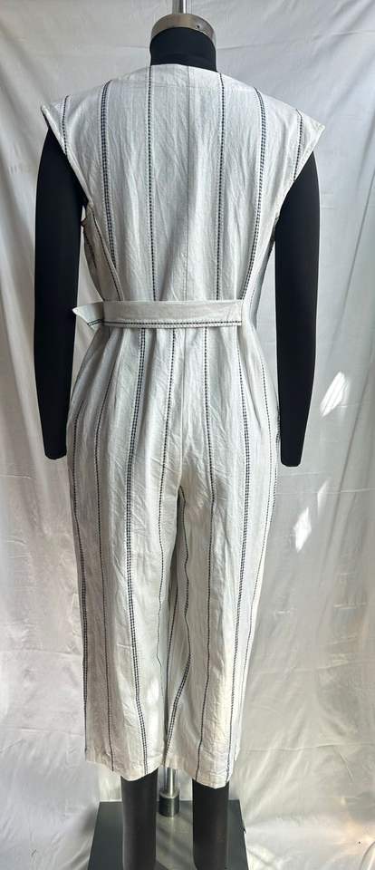 Combinaison pour femme à rayures teintes en fil, col en V, style portefeuille