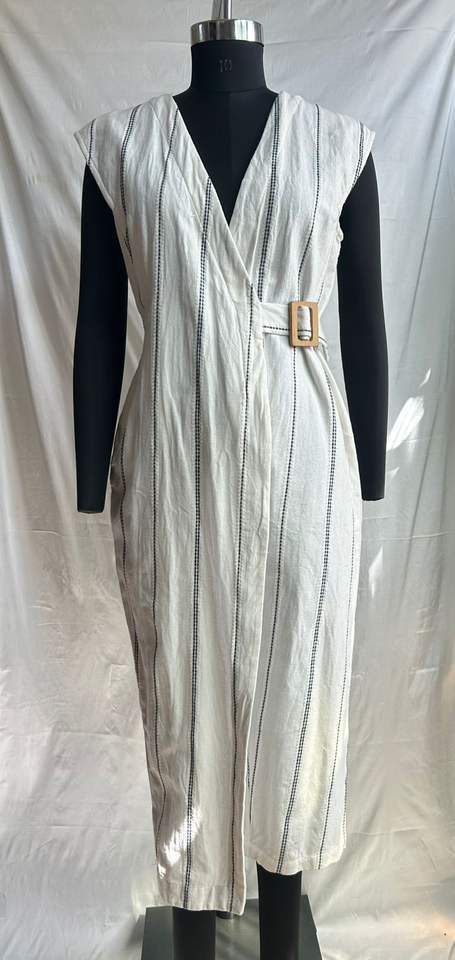 Nom du produit:Combinaison pour femme à rayures teintes en fil, col en V, style portefeuille