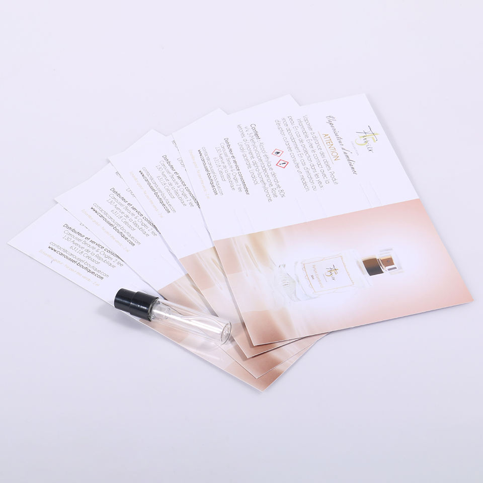 Cartes d'échantillons de parfum personnalisées recyclées avec logo imprimé, cartes testeurs de parfum, cartes en papier pour échantillons de parfum