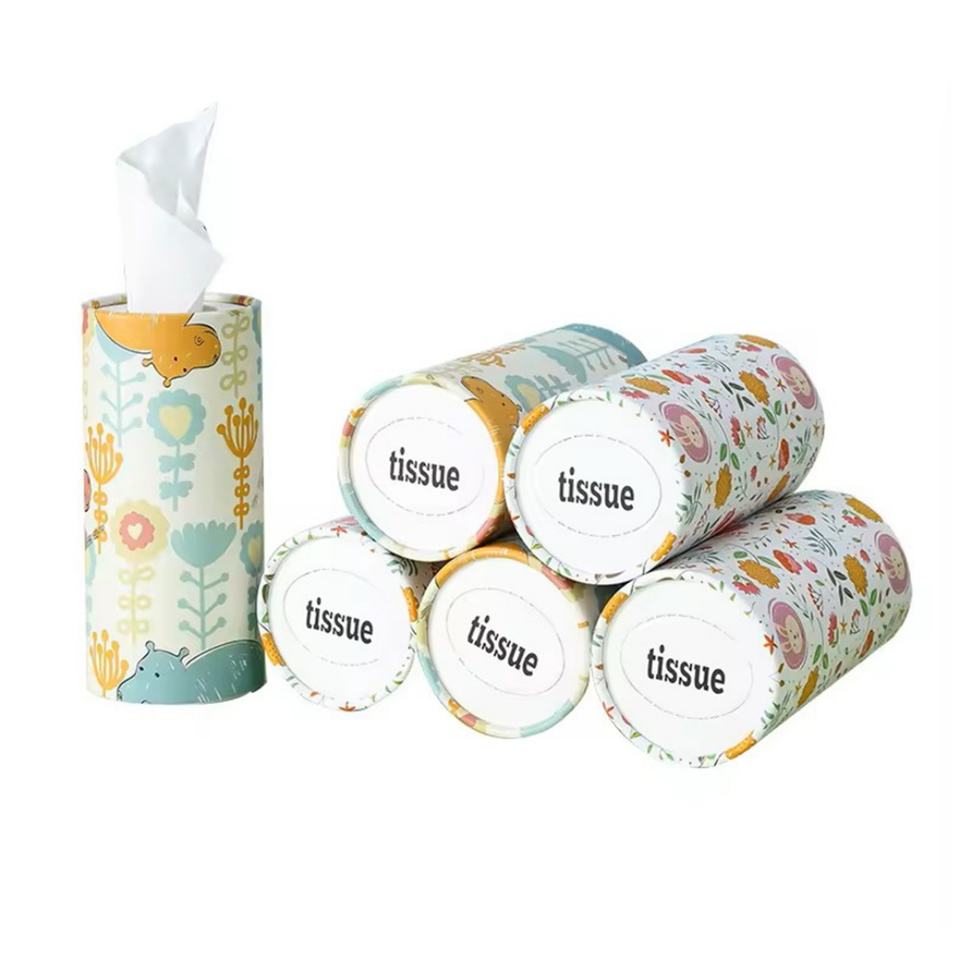 Tubes en papier recyclé personnalisés avec logos, adaptés à l'emballage de mouchoirs. Facile à utiliser et respectueux de l'environnement.